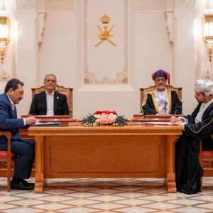 据阿曼通讯社27日报道,阿曼苏丹海赛姆当天同到访的伊朗总统佩泽希齐扬举行会谈,并共同出席两国多项合作文件的签署仪式。