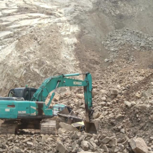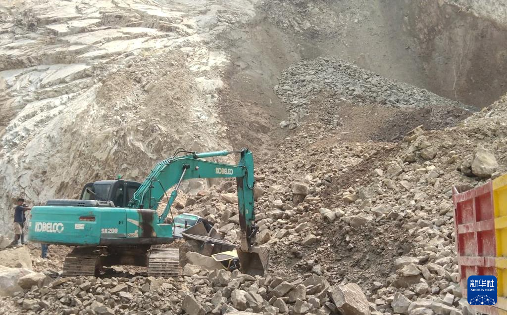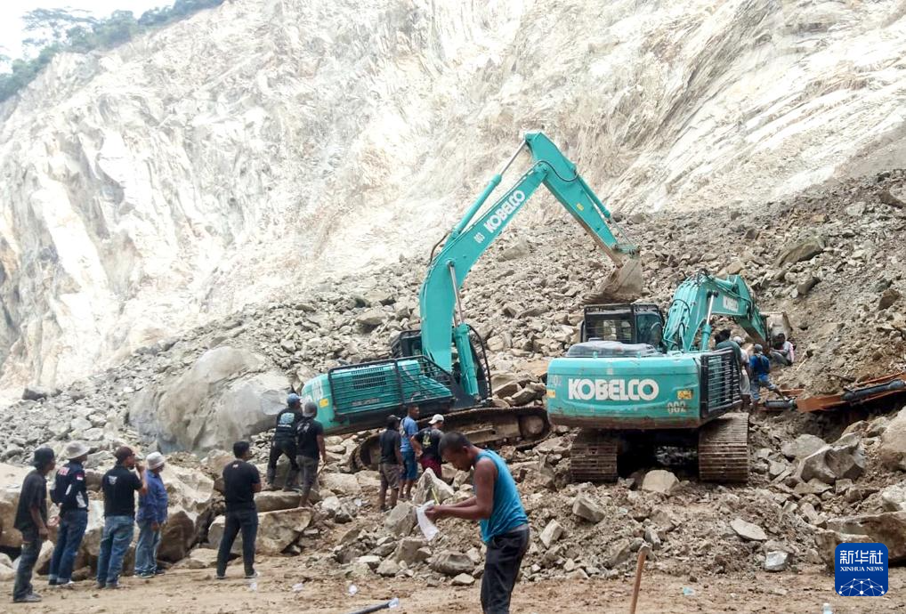 5月30日,在印度尼西亚西爪哇省井里汶,挖掘机在事发采石场开展救援工作(手机照片)。