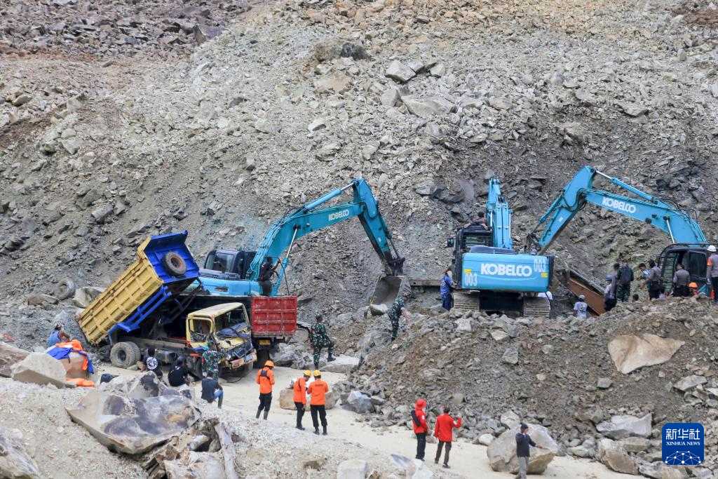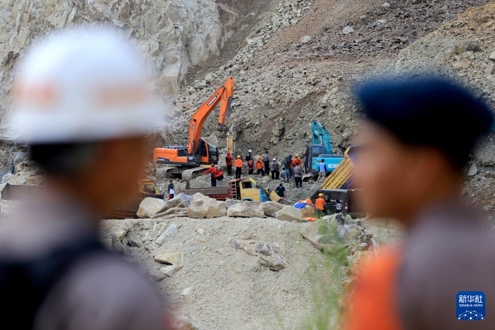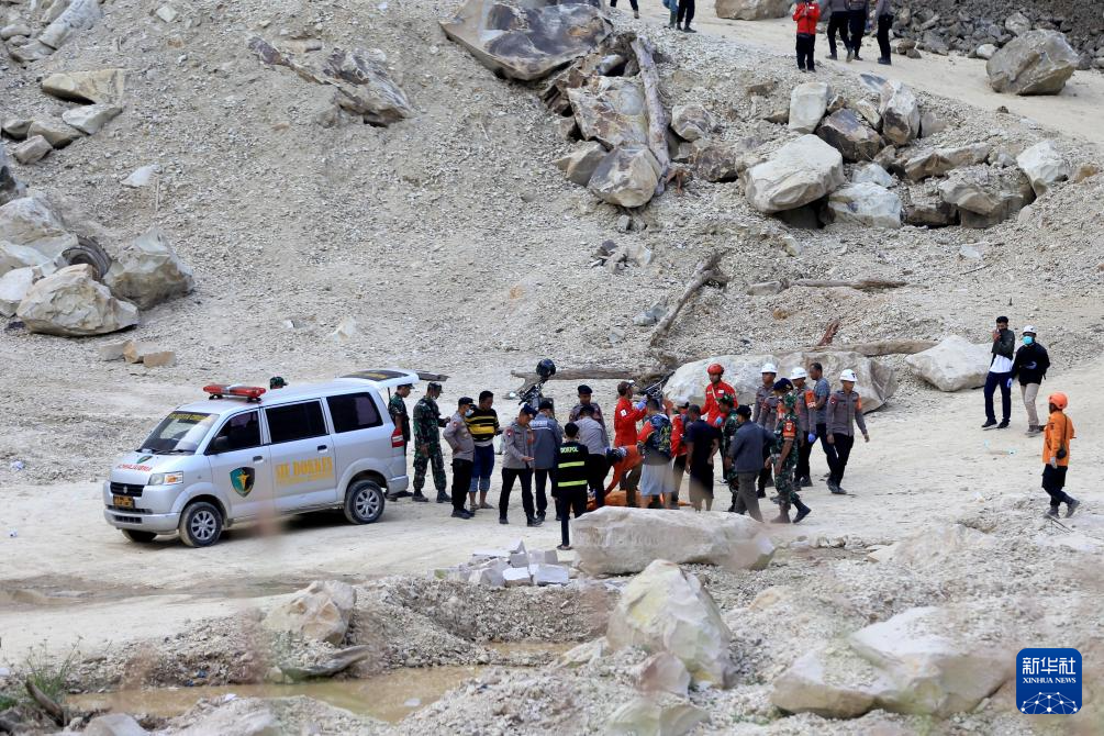 5月30日,在印度尼西亚西爪哇省井里汶,搜救人员在事发采石场开展救援工作。