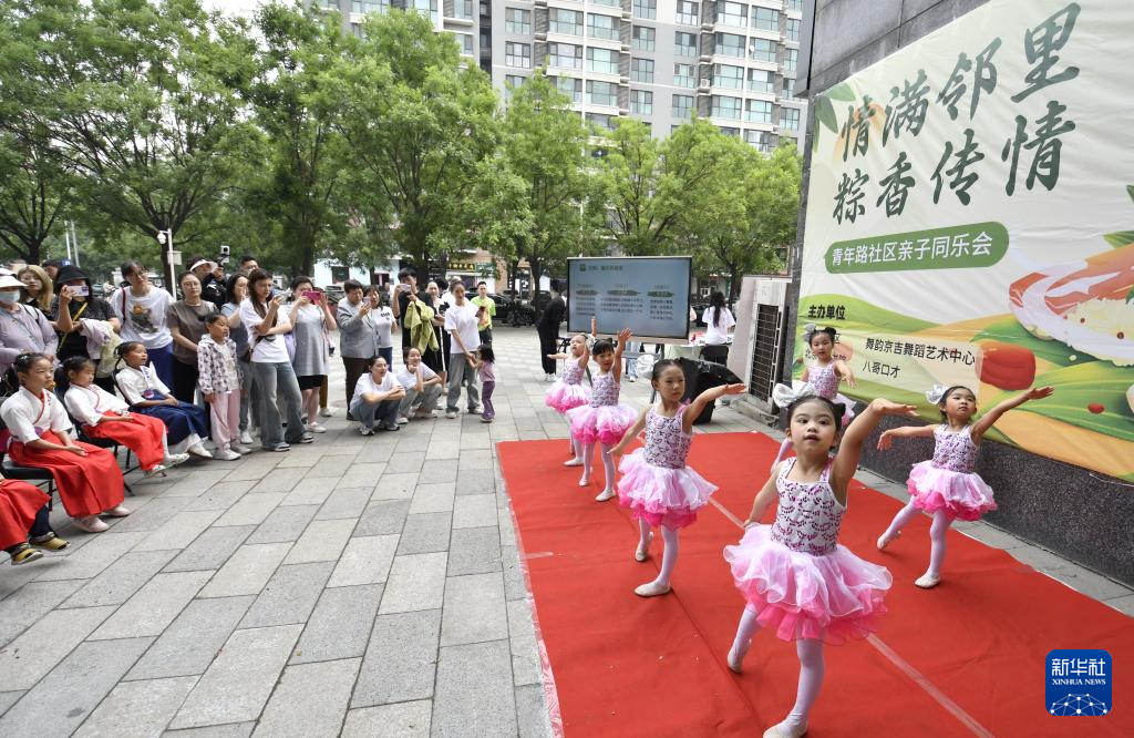 5月31日,青年路社区的孩子们在邻里共度端午节活动上表演舞蹈。