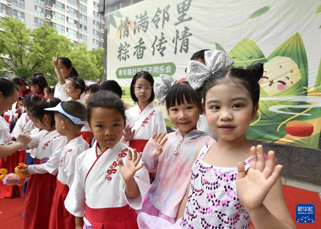 当日,北京市朝阳区青年路社区组织居民开展“情满邻里 粽香传情”邻里共度端午节活动,社区里的孩子们和家长一起参加了书法、文艺表演、香囊制作、阅读等活动。