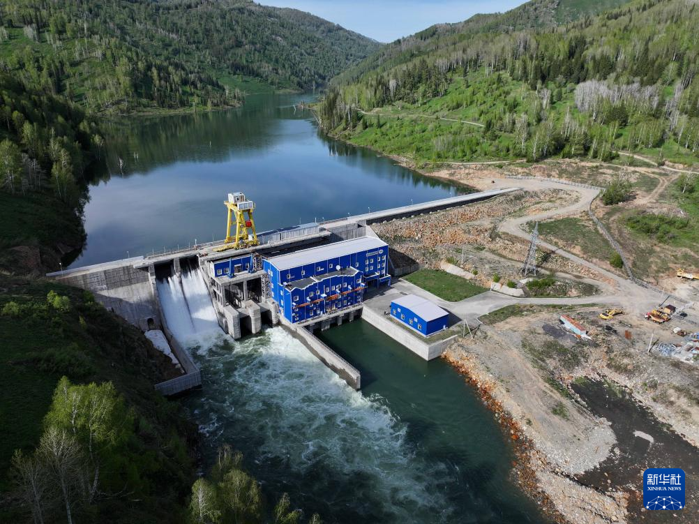 这是5月8日在哈萨克斯坦东哈州拍摄的图尔古孙水电站(无人机照片)。