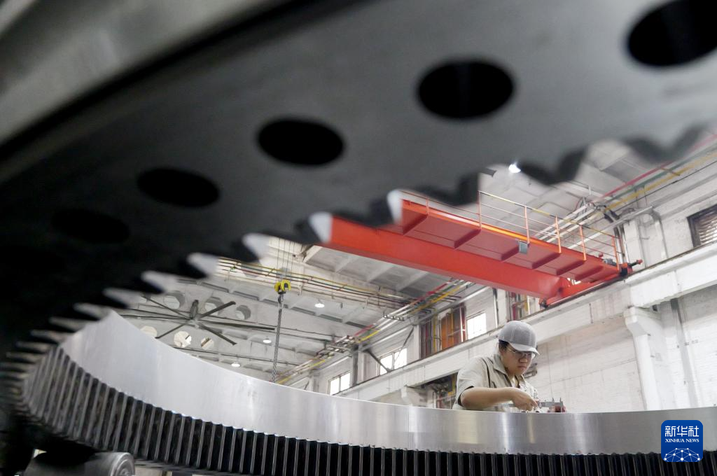 5月22日,工人在洛轴集团风电三车间生产线上作业。
