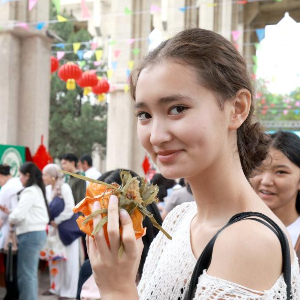 5月30日,在吉尔吉斯斯坦比什凯克,人们在比什凯克国立大学举行的“粽香传情·共庆端阳”端午民俗节上表演吉尔吉斯舞蹈《百灵鸟》。