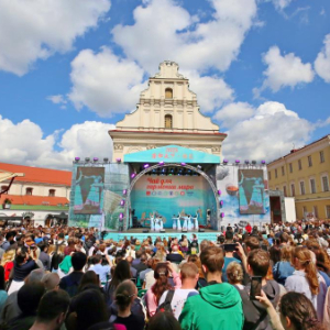 5月31日,在白俄罗斯首都明斯克,市民观看表演。