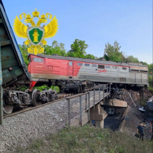 这是俄罗斯莫斯科跨地区交通检察院6月1日发布的库尔斯克州铁路桥坍塌现场照片。
