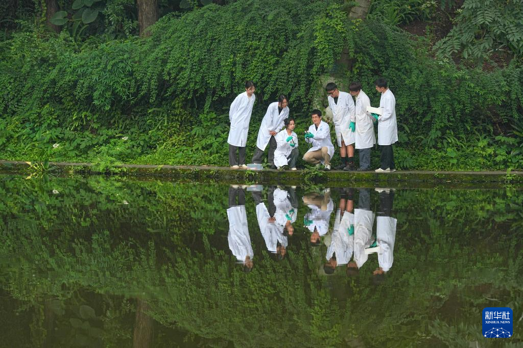6月4日,在位于重庆的西南大学崇德湖畔,该校资源环境学院的师生检测水质以便摸清校园水体情况。