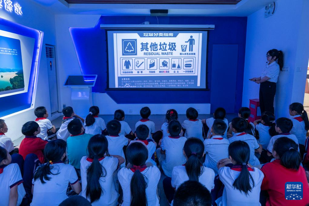 6月4日,在广西梧州粤海环保发展有限公司,学生们认真听取工作人员介绍垃圾分类及污水处理流程。