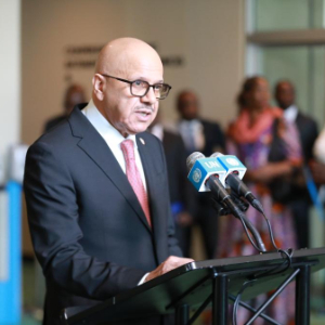 6月3日,在位于纽约的联合国总部,利比里亚副外长格雷在利比里亚当选联合国安理会非常任理事国后讲话。
