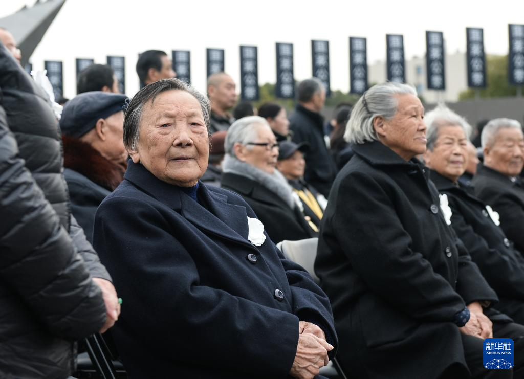 2017年12月13日,夏淑琴(左一)在南京大屠杀死难者国家公祭仪式现场。新华社记者 季春鹏 摄pagebreak