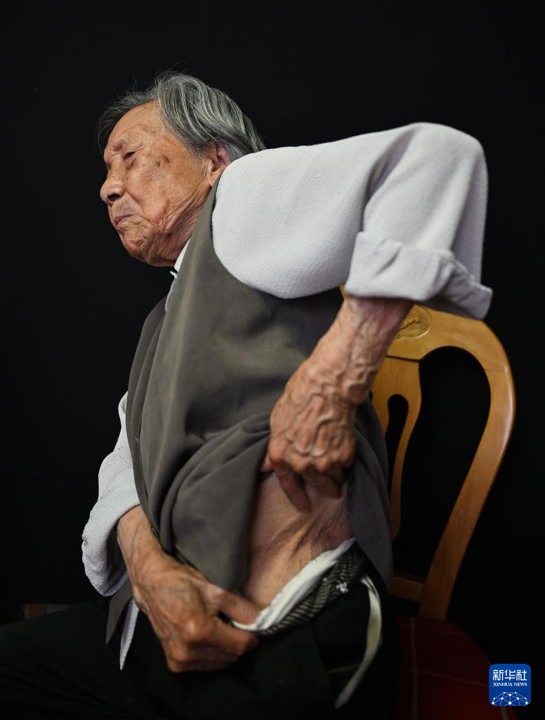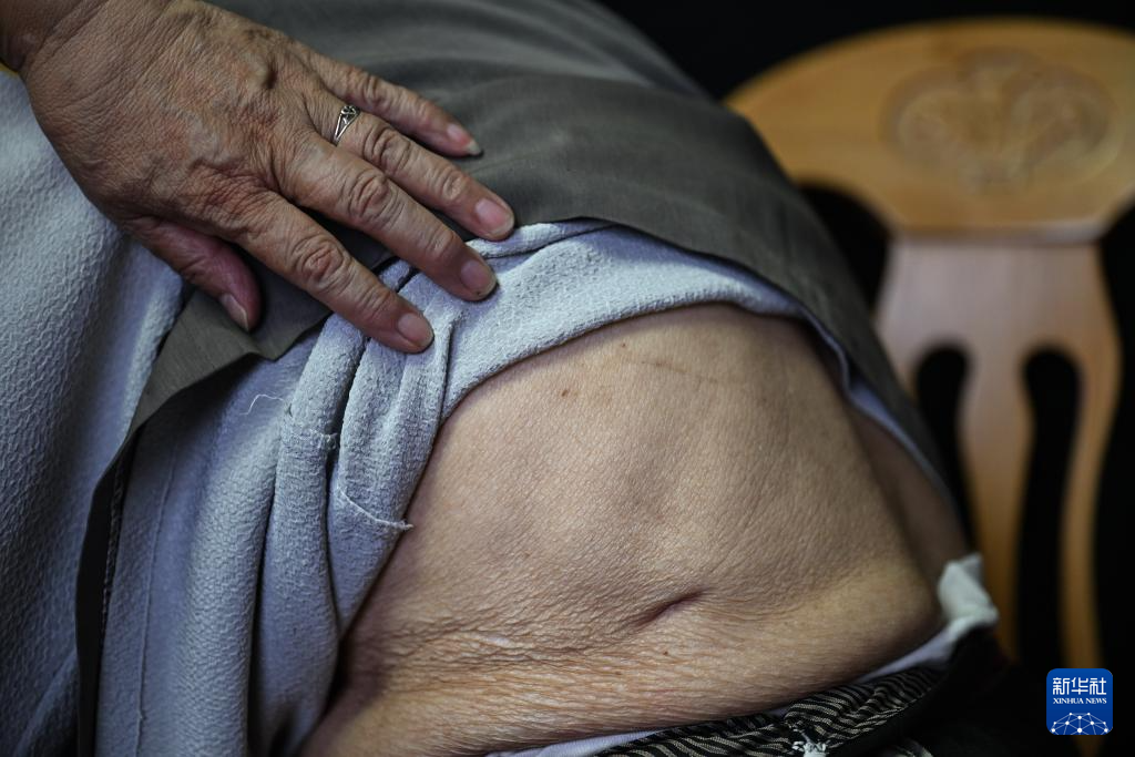 2025年5月21日,夏淑琴展示自己身上的刀疤。新华社记者 季春鹏 摄pagebreak