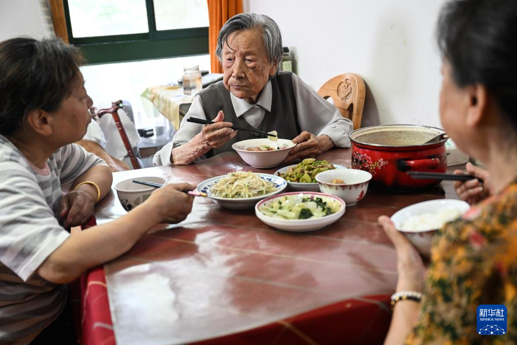 2025年5月21日,夏淑琴(中)和两个女儿在南京家中吃午饭。新华社记者 季春鹏 摄pagebreak