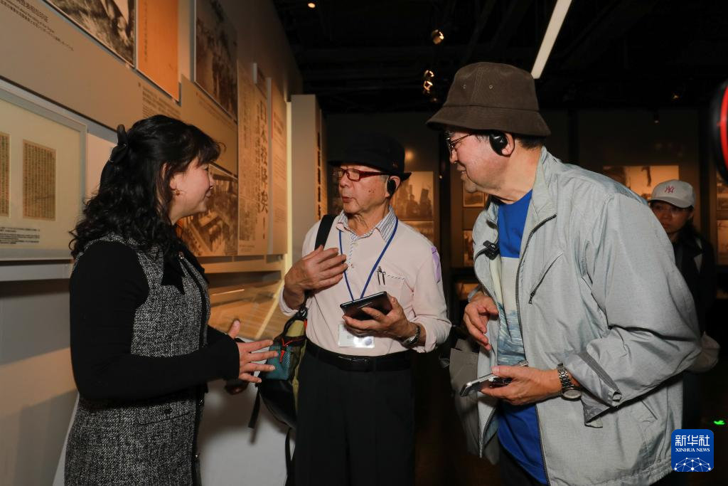 2025年3月26日,夏淑琴的外孙女夏媛(左一)在侵华日军南京大屠杀遇难同胞纪念馆给日本“紫金草合唱团”成员讲解。新华社发pagebreak