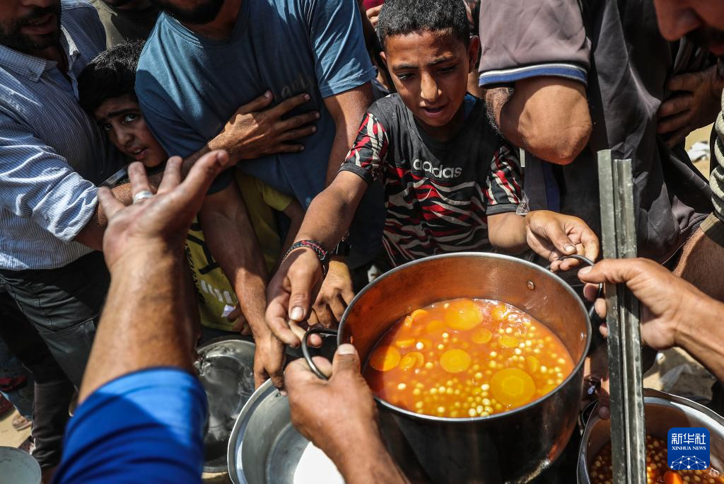6月3日,巴勒斯坦人在加沙城领取食物。
