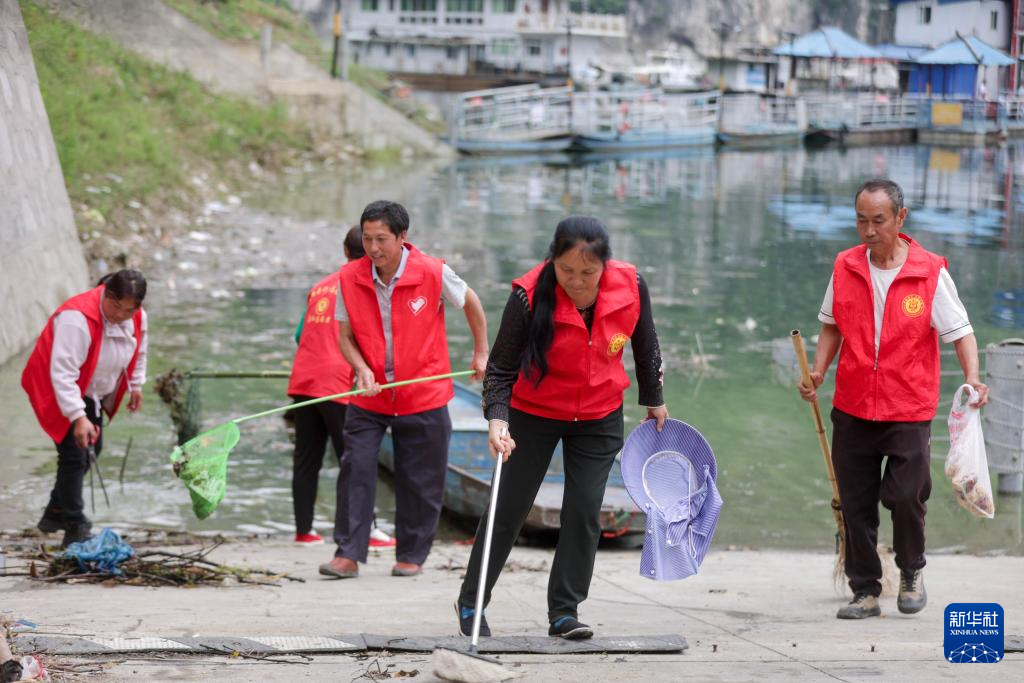 在贵州省遵义市播州区乌江镇坪塘村,有一支护河志愿服务队,他们利用农闲时间打捞乌江库区码头周边的漂浮物,捡拾岸边垃圾,宣传环保,巡河护河。