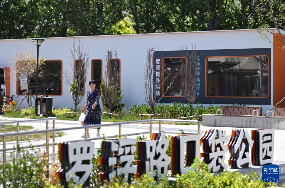 市民在天津市红桥区罗浮路口袋公园散步(6月3日摄)。