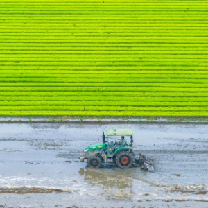 6月9日,在江苏省兴化市陈堡镇蒋庄村,农民驾驶农机在田间耕作,准备夏种(无人机照片)。