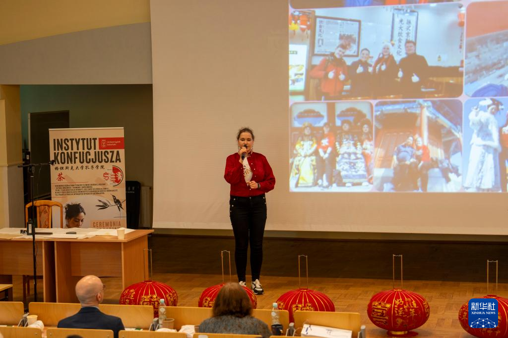 6月6日,在波兰格但斯克,参加“汉语桥”中文比赛的大学生进行中文演讲。