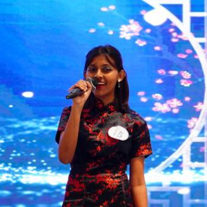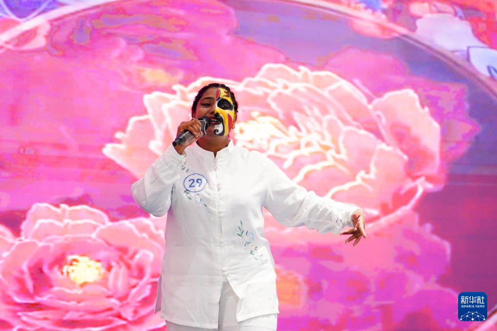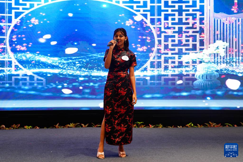 6月3日,在斯里兰卡首都科伦坡,“汉语桥”世界大学生中文比赛斯里兰卡赛区决赛的参赛选手展示才艺。