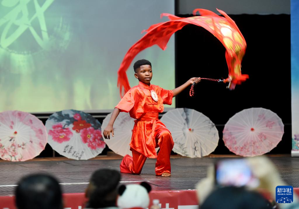6月6日,在博茨瓦纳首都哈博罗内,“汉语桥”世界小学生中文秀博茨瓦纳赛区决赛的参赛选手展示才艺。