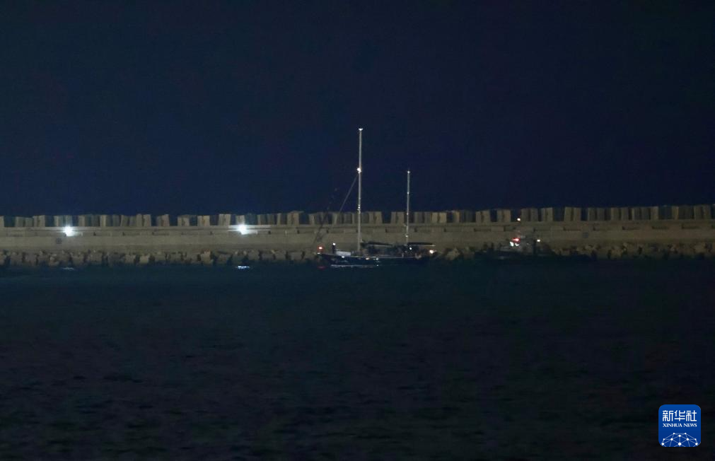 6月9日晚,被以军拦截的人道主义救援船抵达以色列南部阿什杜德港附近海域。