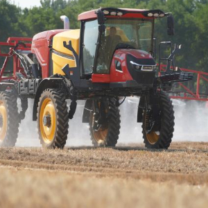活动现场展示的自走式喷雾机(6月12日摄)。