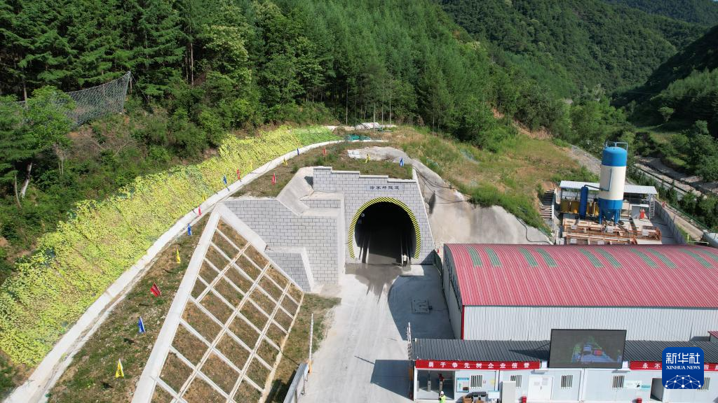 这是已经贯通的天陇铁路徐家坪隧道(6月13日摄,无人机照片)。