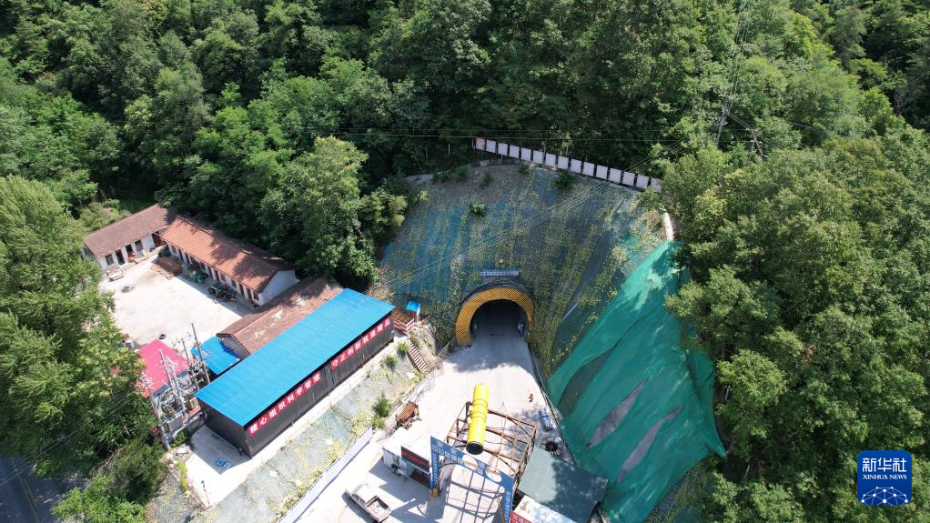 这是已经贯通的天陇铁路徐家坪隧道2号斜井(6月13日摄,无人机照片)。