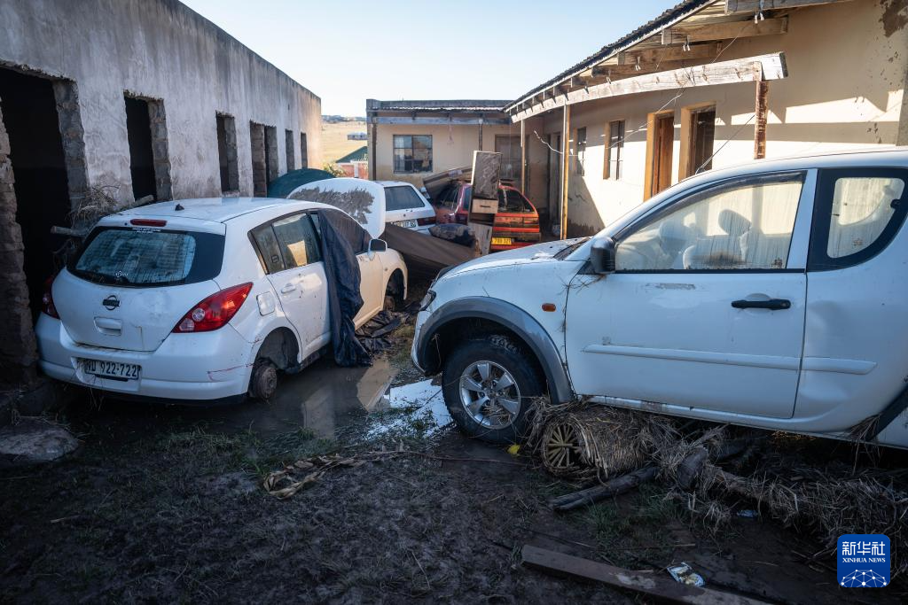 这是6月13日在南非东开普省姆塔塔拍摄的在洪水中受损的车辆。
