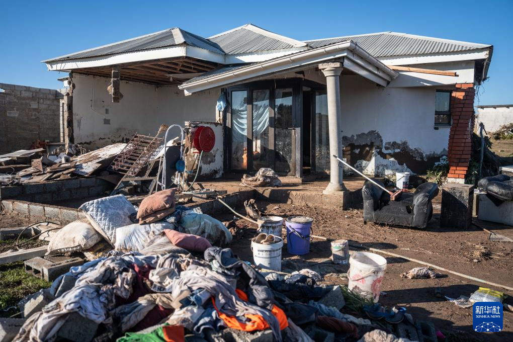 这是6月13日在南非东开普省姆塔塔拍摄的在洪水中受损的房屋。
