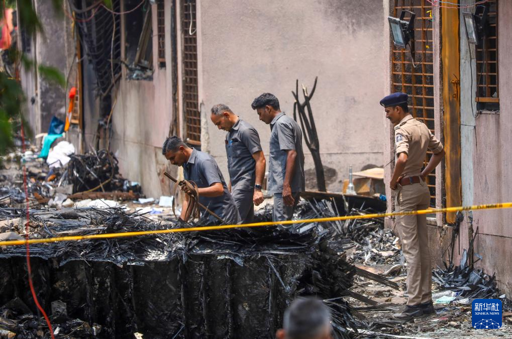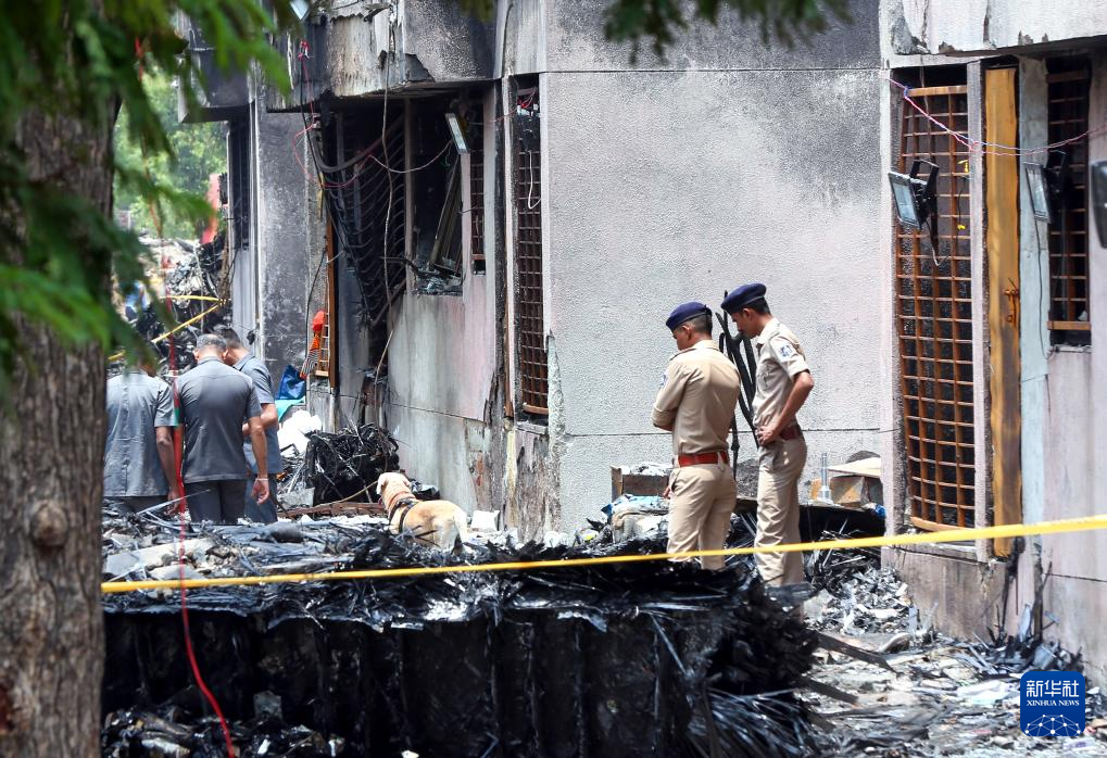 6月13日,工作人员在印度古吉拉特邦艾哈迈达巴德的坠机现场调查。
