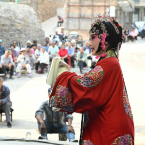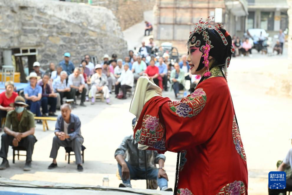 6月13日,井陉晋剧团的演员在河北省石家庄市井陉县辛庄乡北要子村表演晋剧《潇湘夜雨》。
