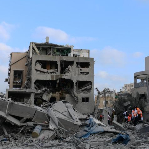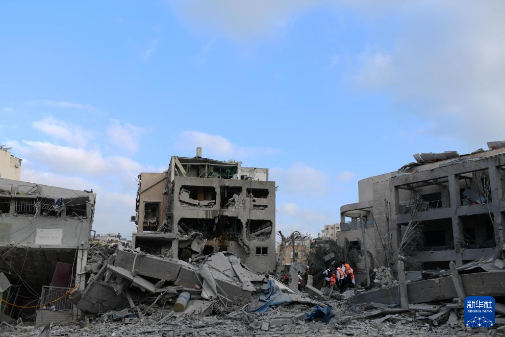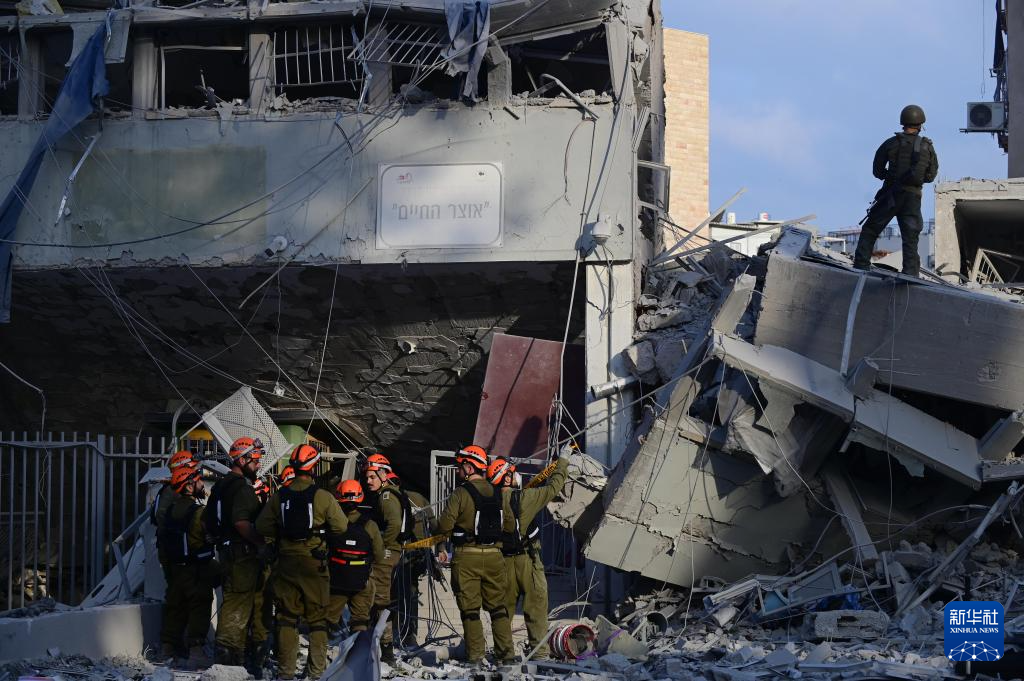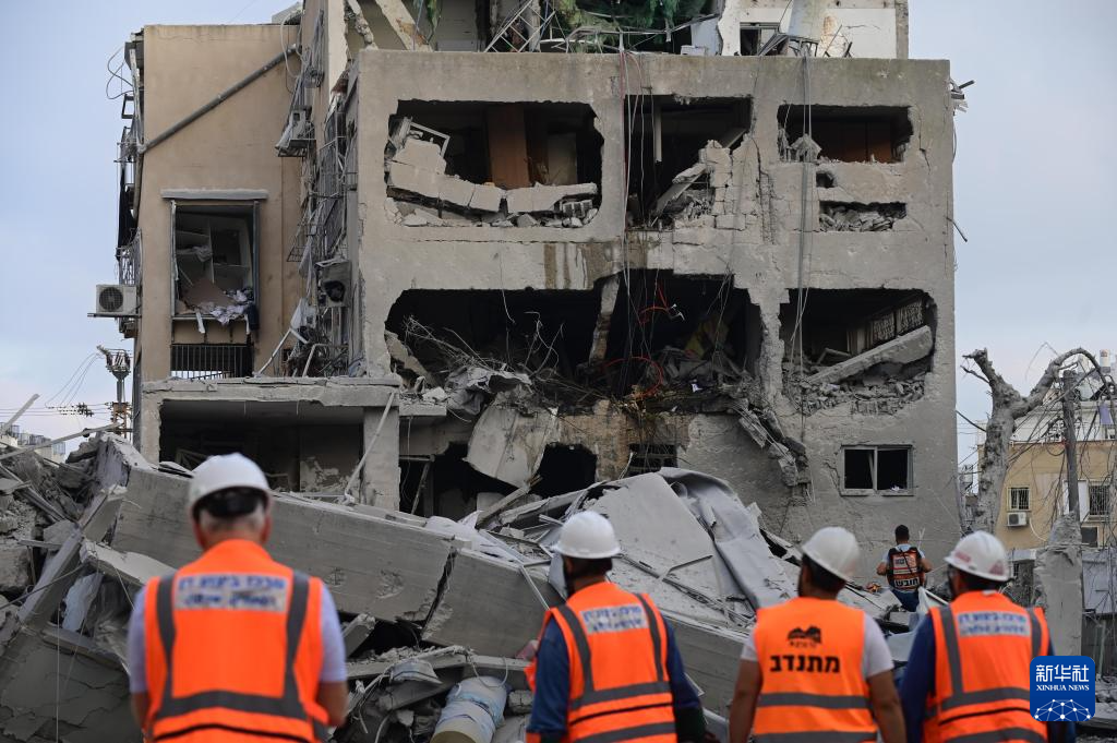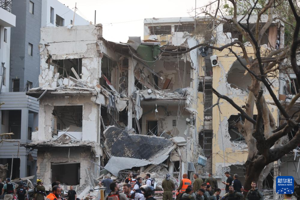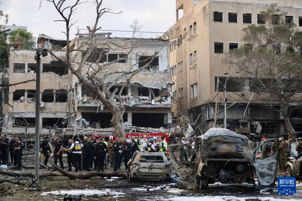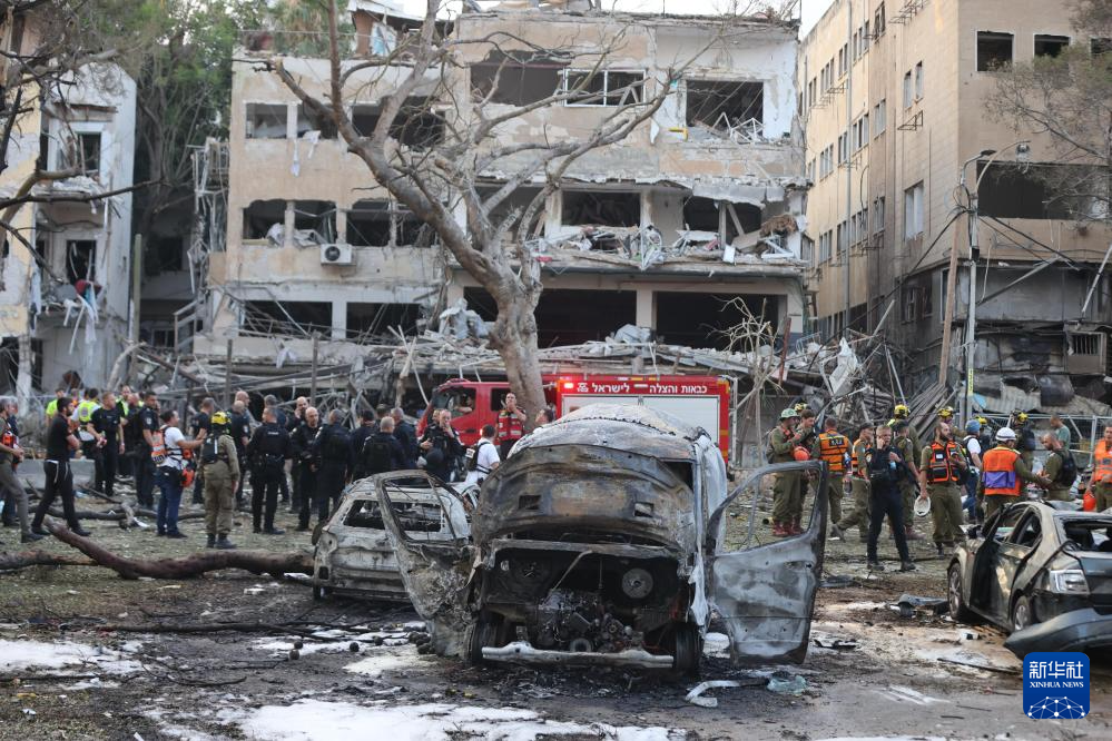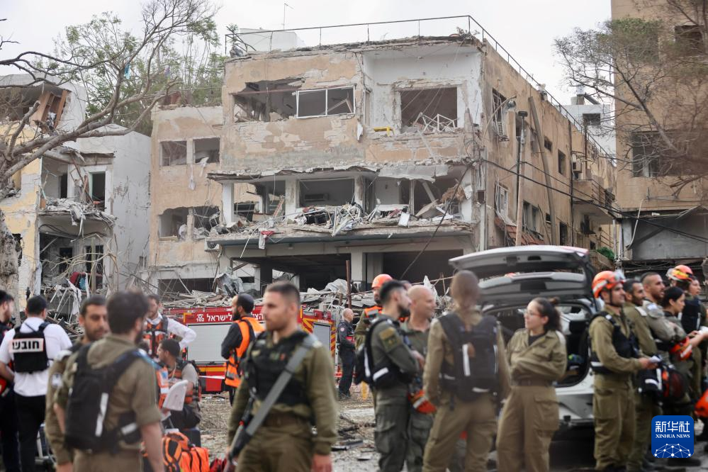 6月16日,在以色列特拉维夫,应急和救援人员在一处导弹袭击现场开展工作。