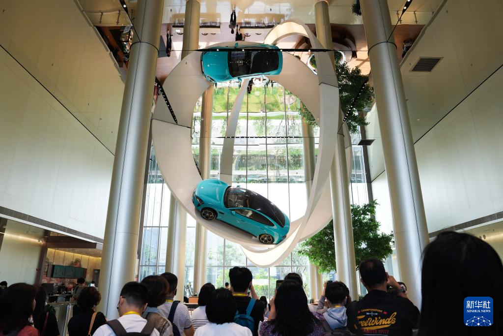 6月16日,参观者在北京小米汽车工厂的体验中心了解SU7汽车。