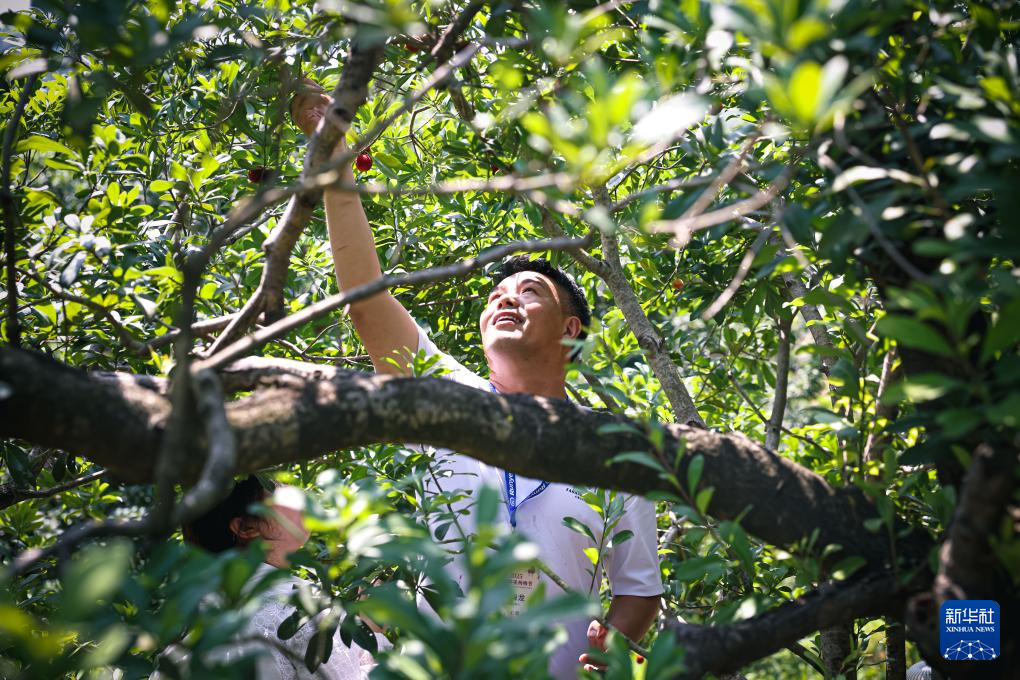 6月17日,游客在宁波市江北区慈城镇南联村体验采摘杨梅。