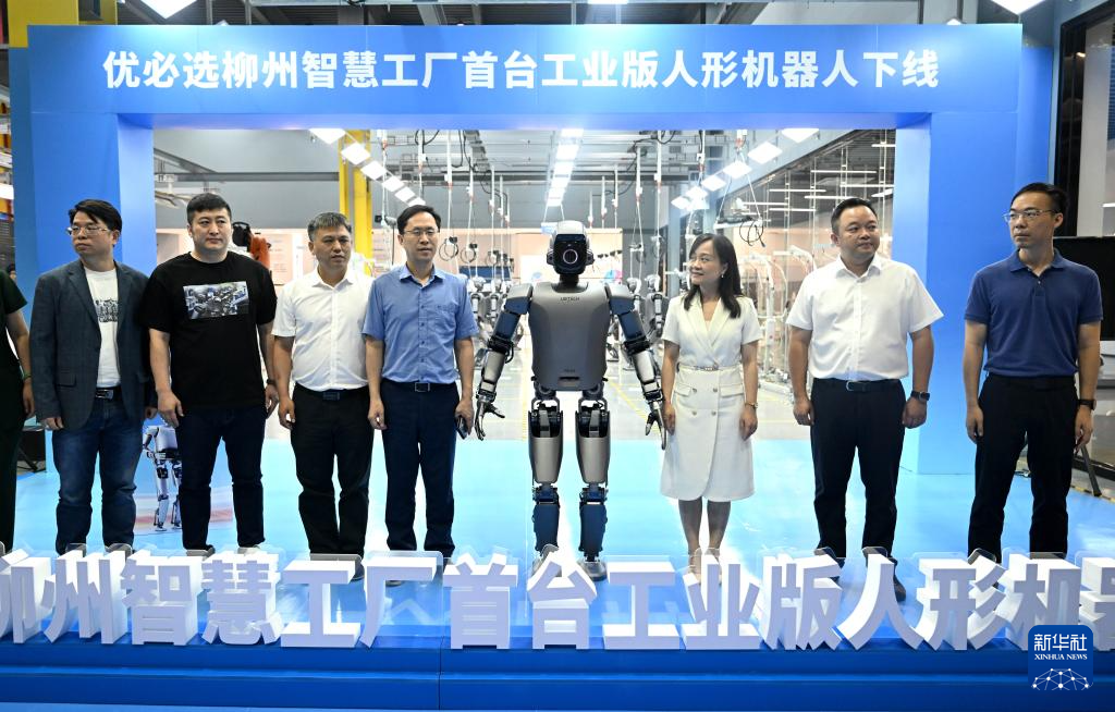 6月18日,在广西柳州市北部生态新区机器人产业园,首台广西制造的工业版人形机器人正式亮相。