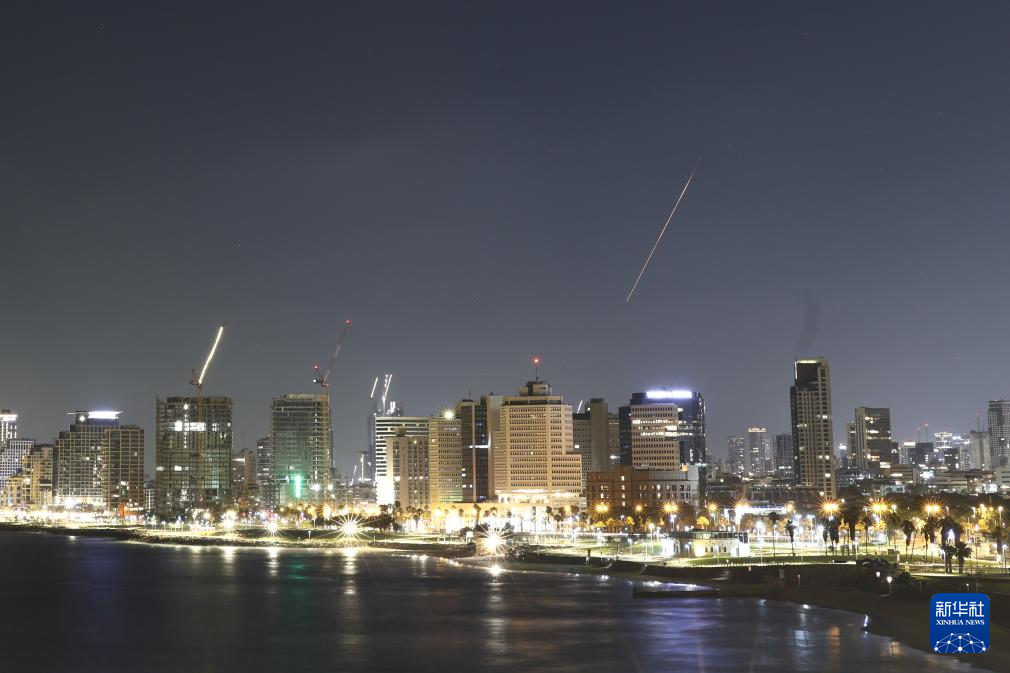 6月19日凌晨,在以色列特拉维夫,防空系统发射拦截弹拦截来袭的导弹。