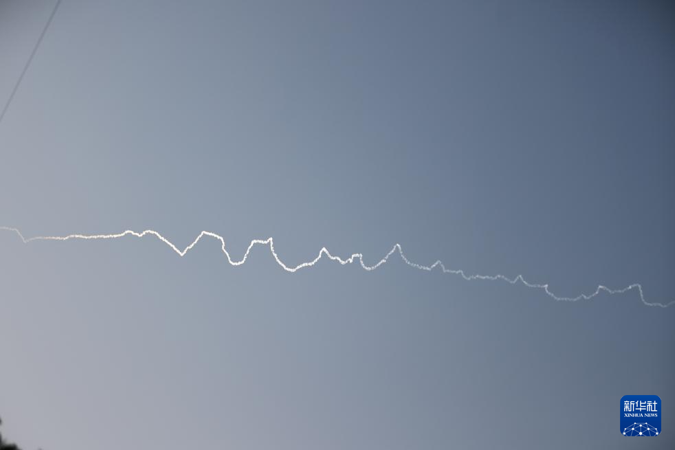 6月18日,在耶路撒冷,防空系统发射拦截弹留下烟轨。