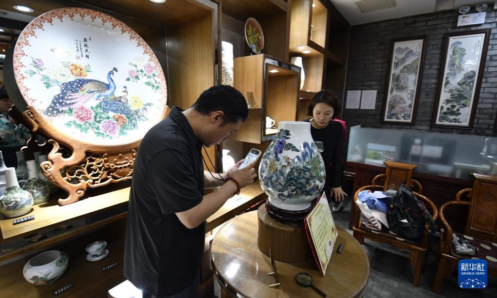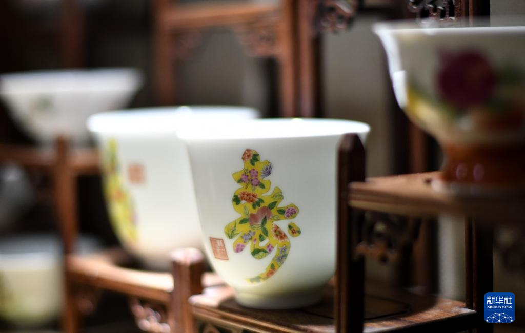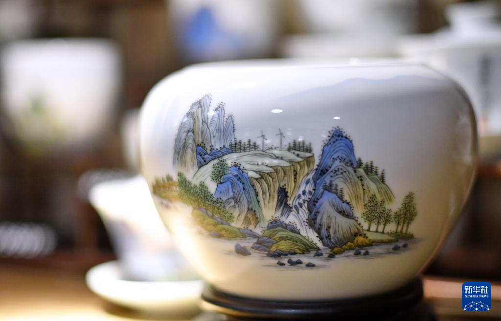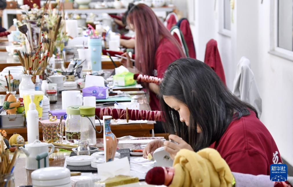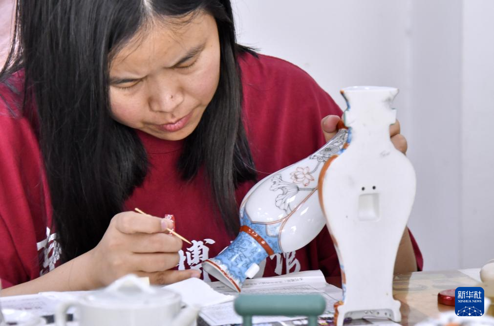 京彩瓷青年传承人在进行创作(6月18日摄)。