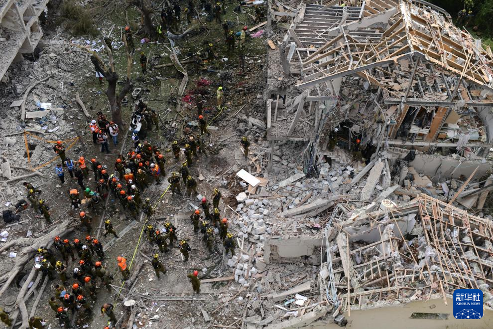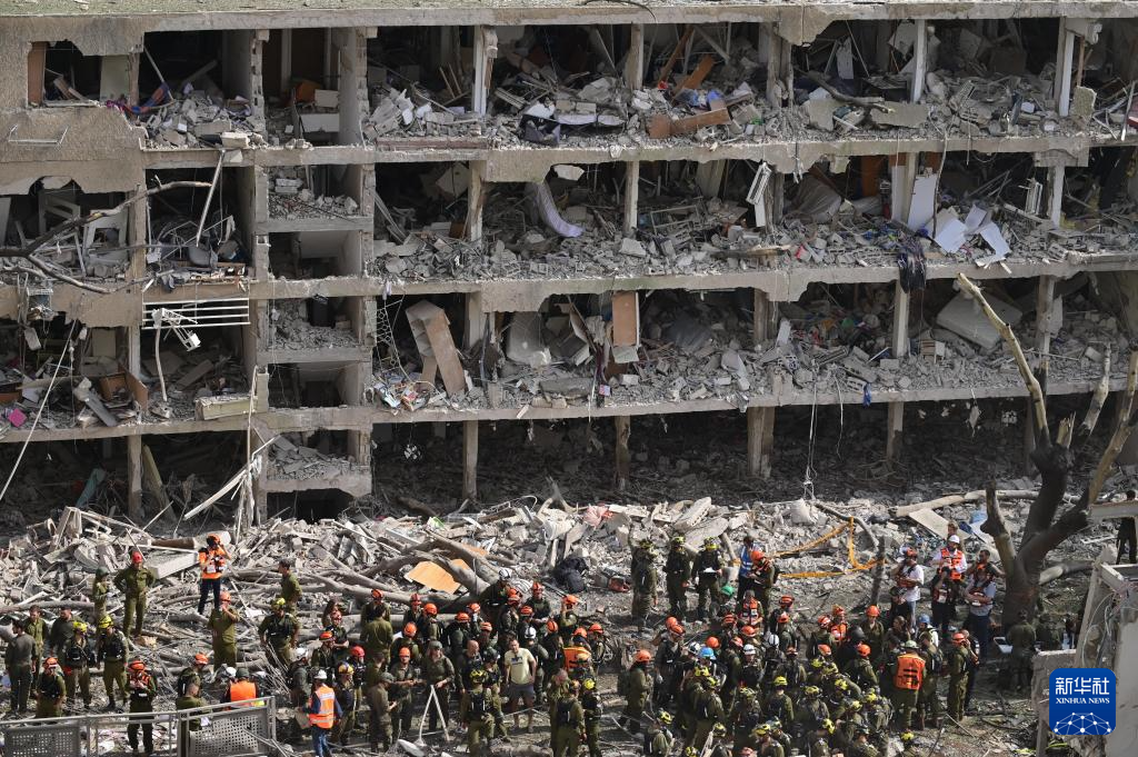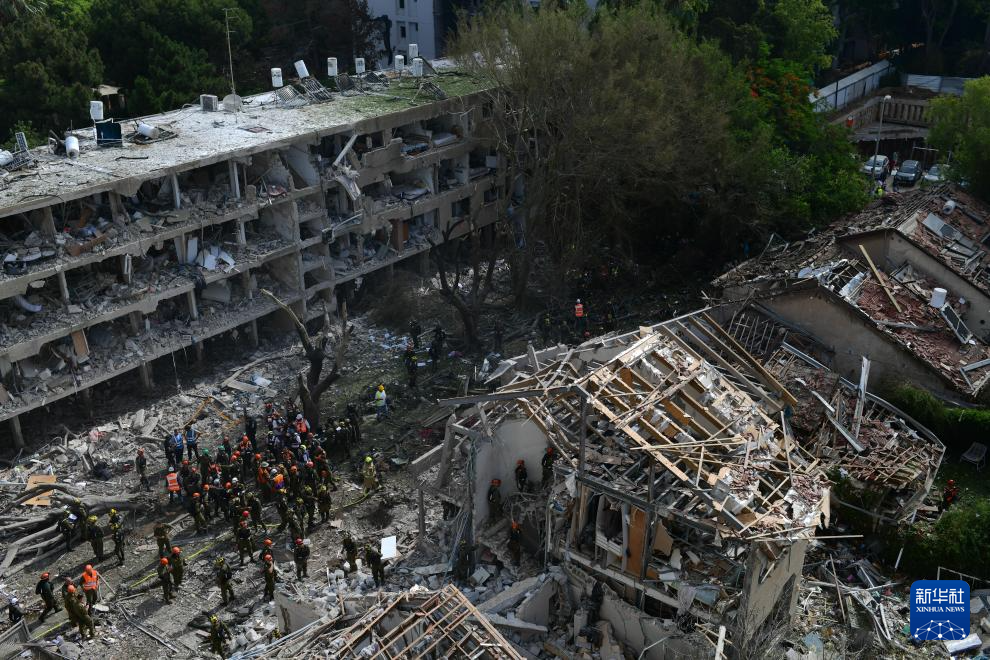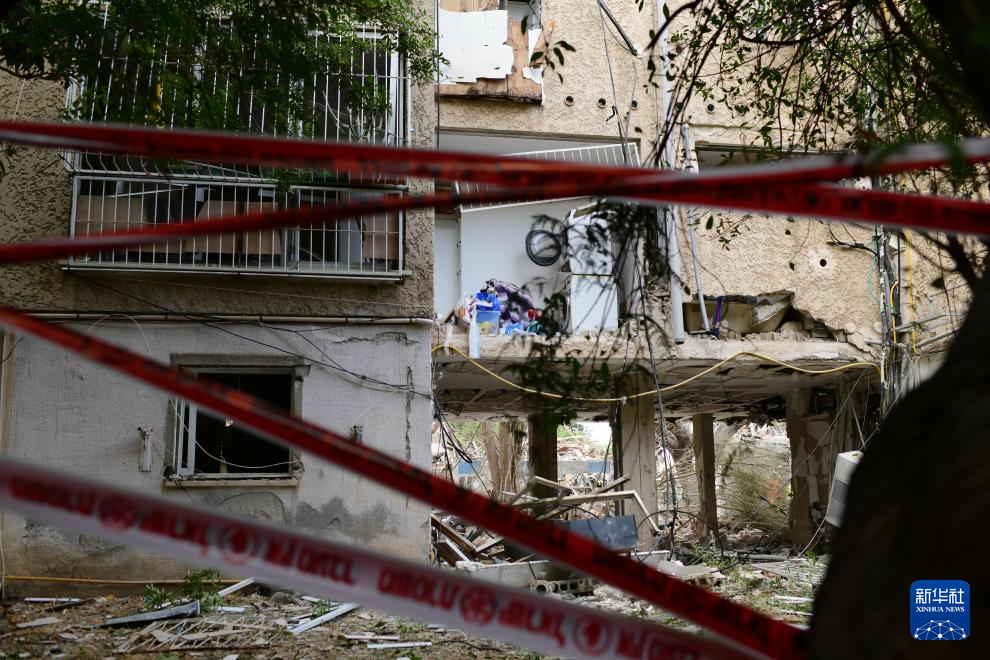 这是6月22日在以色列中部特拉维夫拍摄的在导弹袭击中被毁的建筑。
