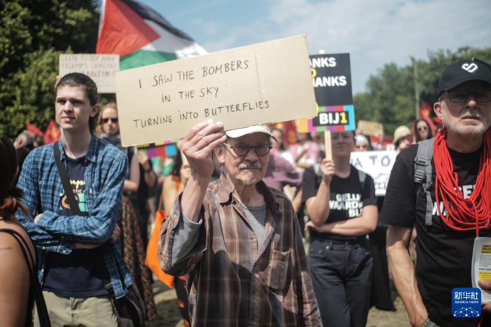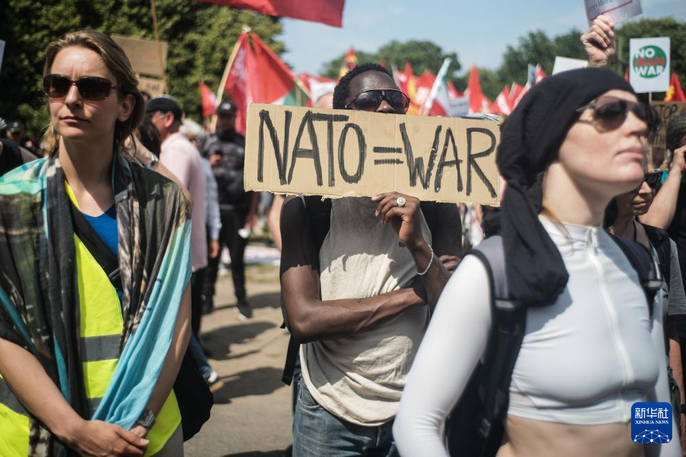 6月22日,民众在荷兰海牙参加反北约集会。