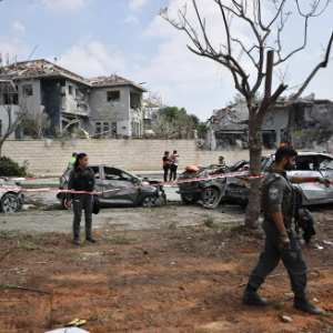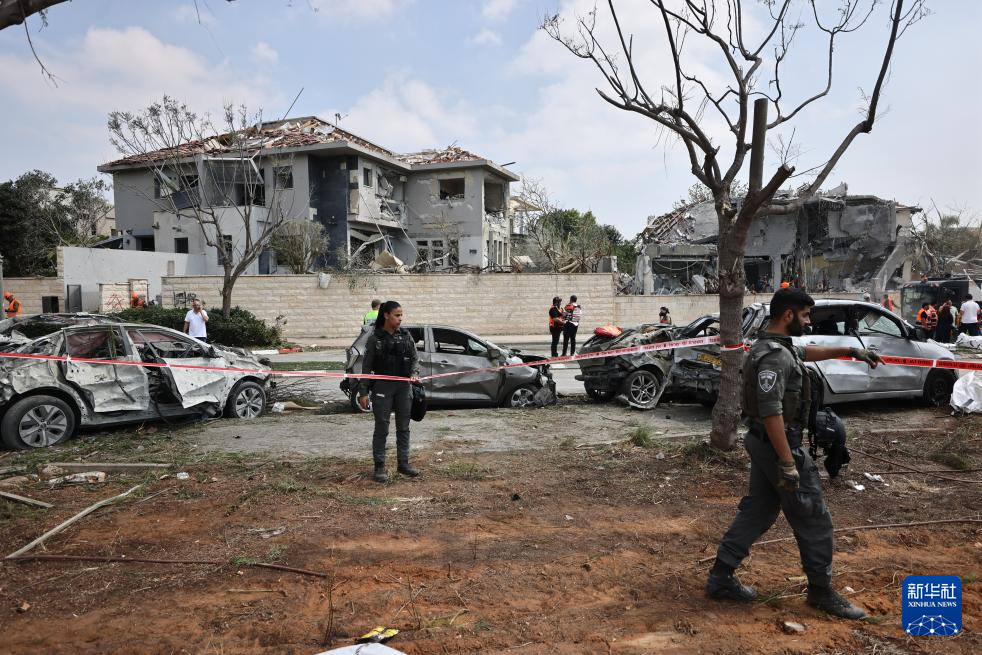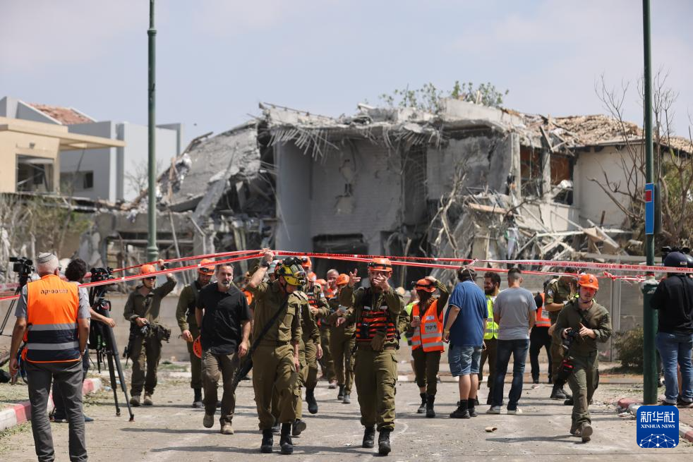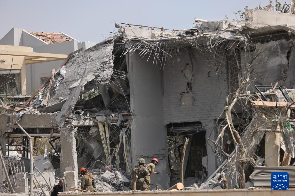 6月22日,应急和救援人员在以色列中部内斯齐约纳的导弹袭击现场开展工作。