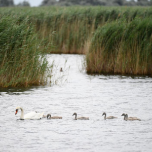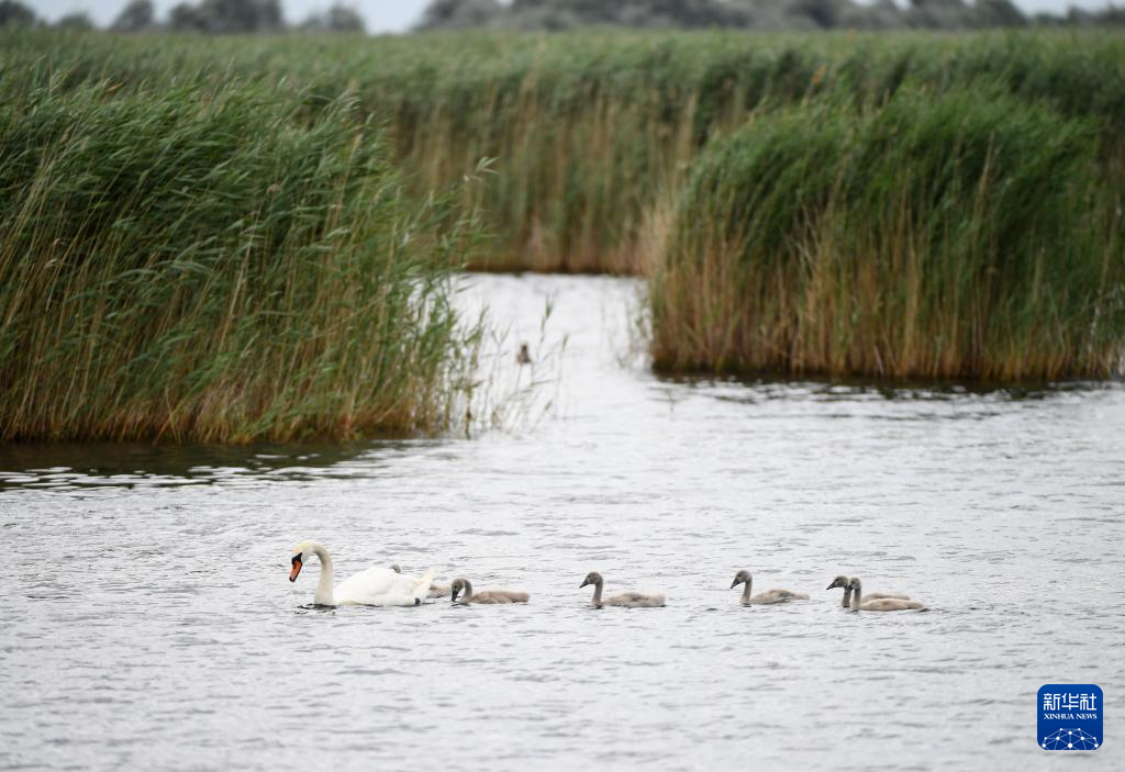 这是6月17日在奥地利新锡德尔湖-千湖区国家公园拍摄的天鹅。