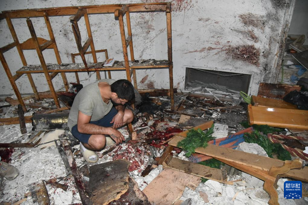 这是6月22日拍摄的叙利亚首都大马士革东部发生爆炸的教堂外景。
