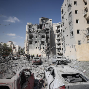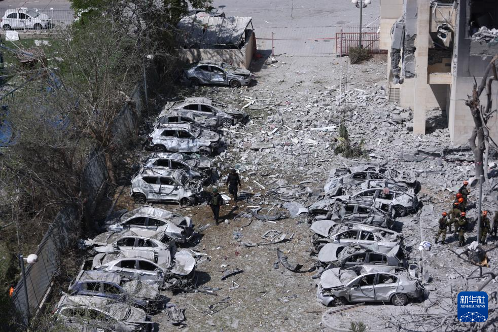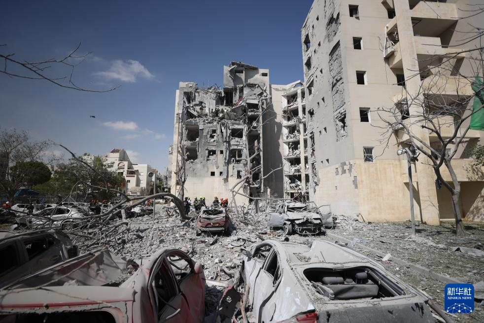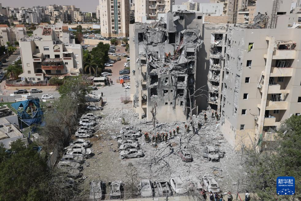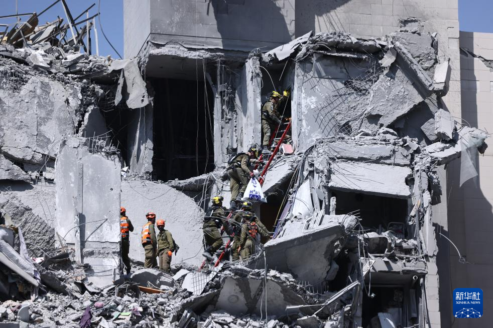 6月24日,应急和救援人员在以色列南部贝尔谢巴的导弹袭击现场开展工作。