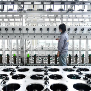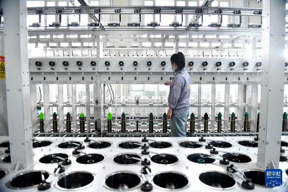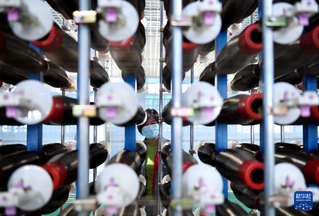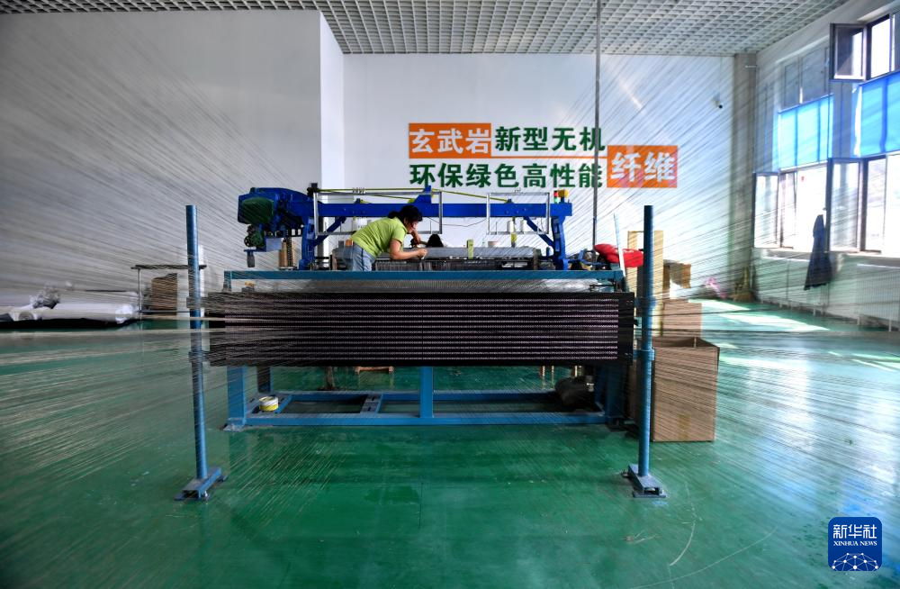 6月24日,围场县一家玄武岩纤维生产企业的工人在生产车间忙碌。