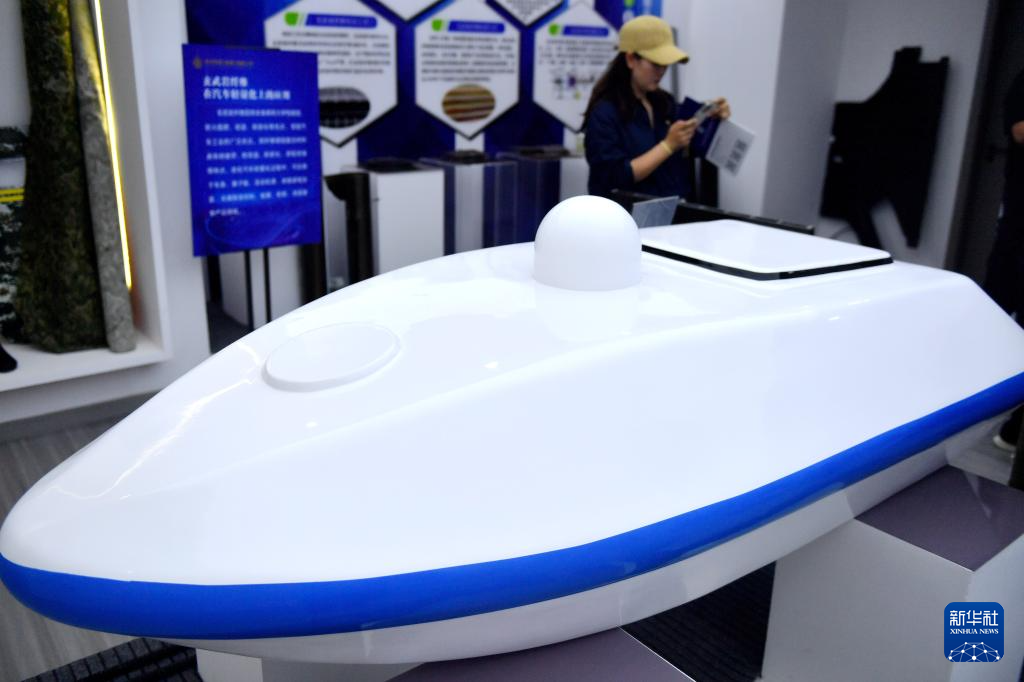 6月24日在围场县一家玄武岩纤维生产企业展厅内拍摄的玄武岩纤维复合材料无人船。
