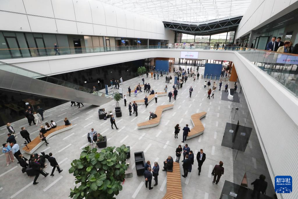 6月26日,在白俄罗斯明斯克,欧亚经济论坛与会者在明斯克国际展览中心外交流。