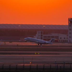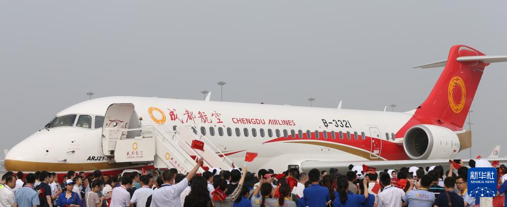 2016年6月28日,首架C909投入商业运营。在成都双流国际机场停机坪上,工作人员欢送即将起飞的C909。