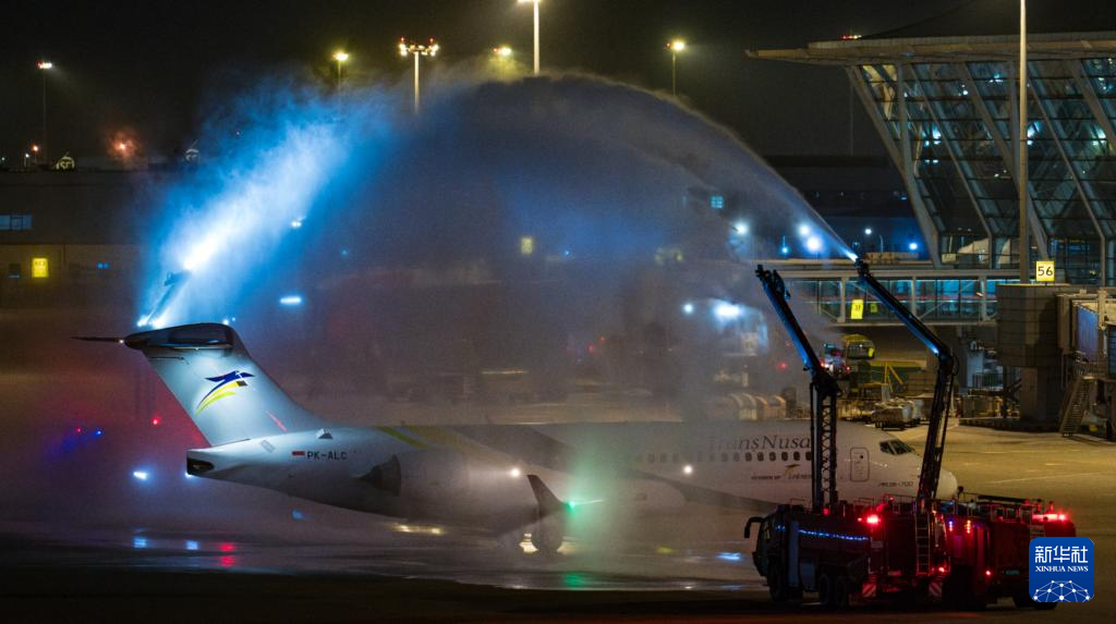 2025年5月8日,一架印尼翎亚航空的C909飞机抵达上海浦东国际机场。